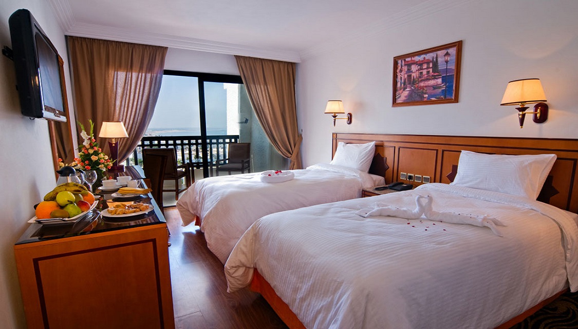 L'hôtel Royal Mirage est situé dans le centre d'Agadir, à proximité de la plage de sable. Cet hôtel 4 étoiles surplombe la baie et possède une salle de sport, un sauna ainsi que 2 piscines extérieures. Une connexion Wi-Fi est disponible dans l'ensemble des locaux. Présentant un décor marocain, les chambres bien équipées sont dotées d'un balcon ou d'une terrasse offrant une vue sur la mer, le jardin ou la piscine. Le restaurant-buffet Atlantis sert des plats internationaux, tandis que le restaurant Tajine prépare une cuisine marocaine. Vous trouverez aussi un snack-bar près de la piscine. Le bar Bella Vista, ouvert 24h/24, organise en outre des concerts.